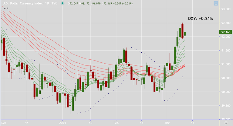 Optimism surrounding America’s $1.9 trillion relief bill restricted the US 10-year Treasury yields around 1.53%.
