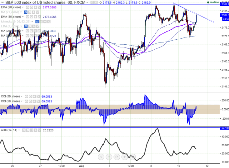 - The index erased some of the losses made yesterday after making a low of 2172. It is currently trading around 2180.
