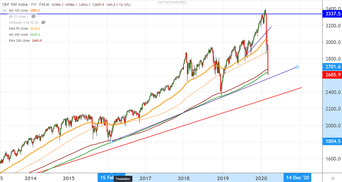 S&P500 is trading weak for 3rd consecutive week and lost more than 20%. The index is in a bearish trend and major weakness can be seen only less than 2580. The overall trend is weak but in weekly charts, RSI is in 25 levels which show the market is oversold.
