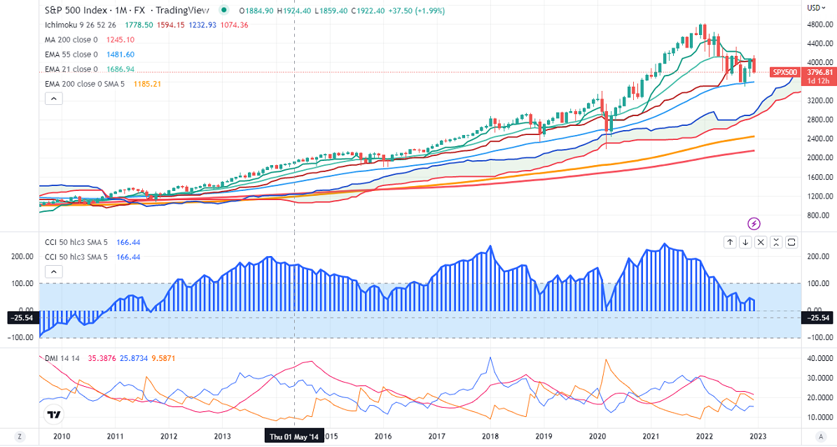 S&P500 has taken support near 55-Monthly EMA