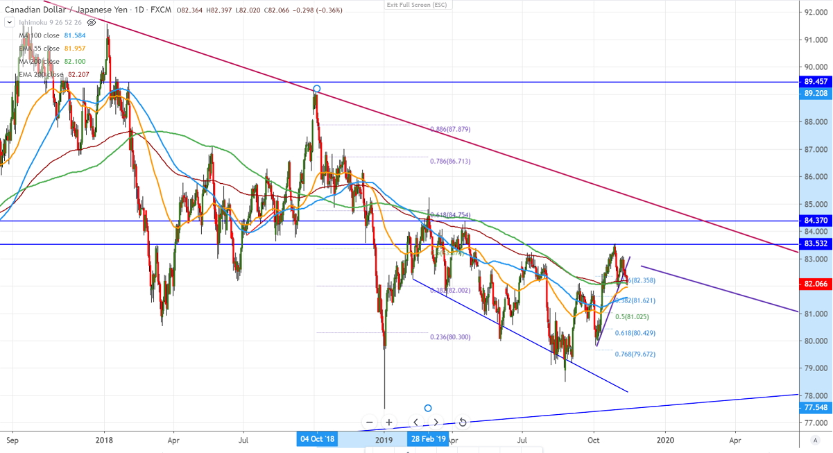 The near-term resistance is around 83.55 high made on Oct 28th, 2019, breaks over targets 84.03/84.35. Major trend reversal can be seen only if pair closes above 84.35, a jump till 85/85.20 likely.