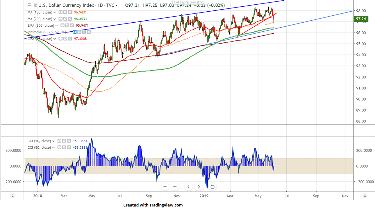 The near term major support is around 97 and any violation below will drag the index till 96.75/96.44/95.93.
