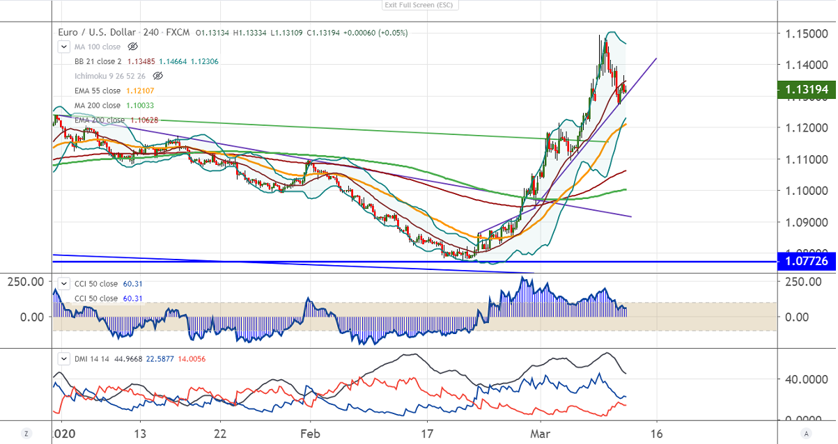 EURUSD recovered slightly above 1.1350 as market mood improves slightly with US stocks surged nearly 5%. Markets eye US Trump fiscal stimulus package for coronavirus. The pair declined more than 50 pips from the intraday high of 1.3667.