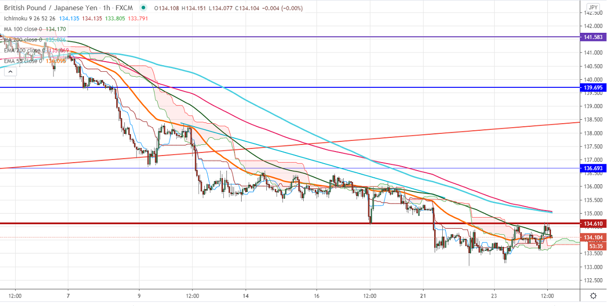 It is good to sell on rallies around 134.55-60 with SL around 135.10 for the TP of 131.75.