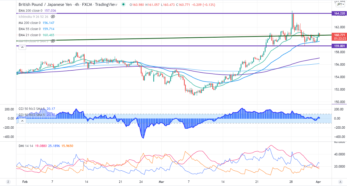 On the lower side, immediate support is around 160.40, violation breach below will drag the pair to the next level to 160/159.40/159. The minor resistance to be watched is around 161.20, a break above that level confirms intraday bullishness, a jump till 162/164 is possible.