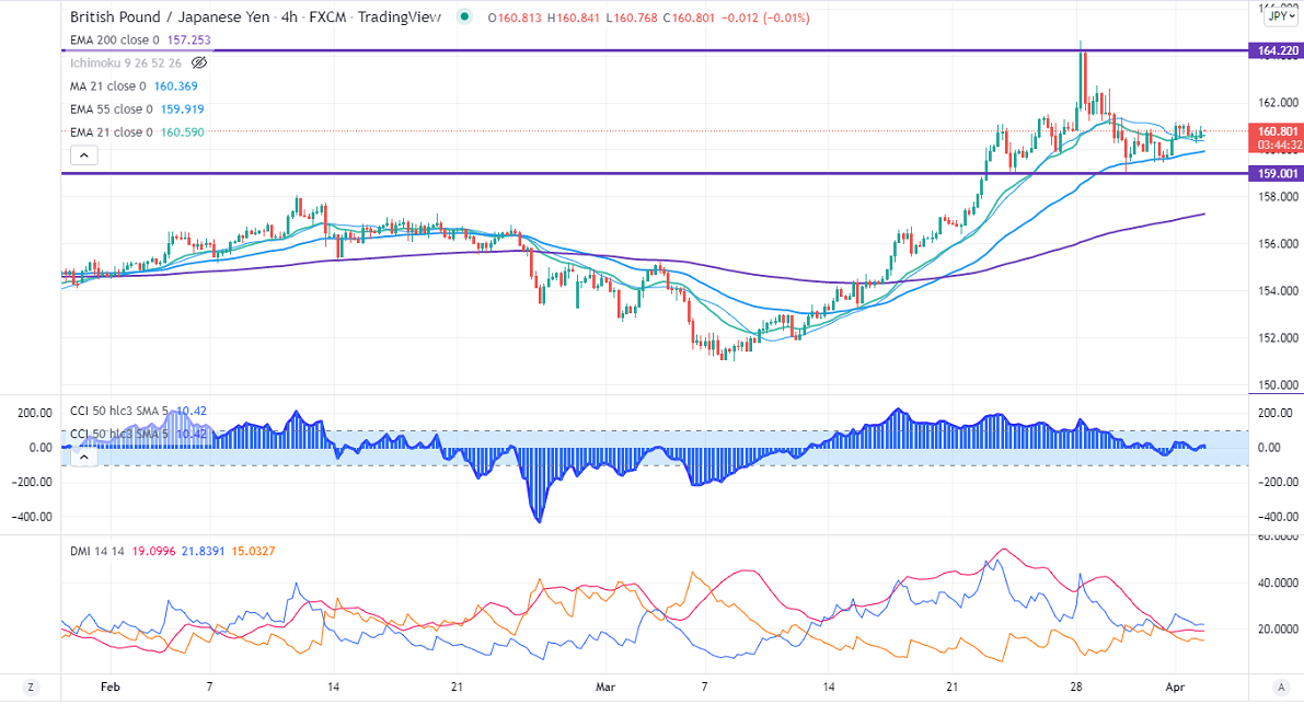 GBPJPY is trading higher for the second consecutive day and holding above 160. A minor weakness in the Japanese yen is supporting the pair at lower levels. The pound sterling consolidates in a narrow range between 1.31825 and 1.30858 for the past three days. Any breach below 1.310 confirms the intraday bearishness.