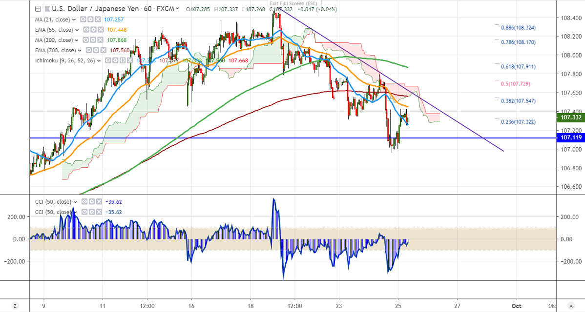 The near term resistance is around 107.55 (23.6% fib) and any violation above will drag the pair to the next level till 108/108.50.