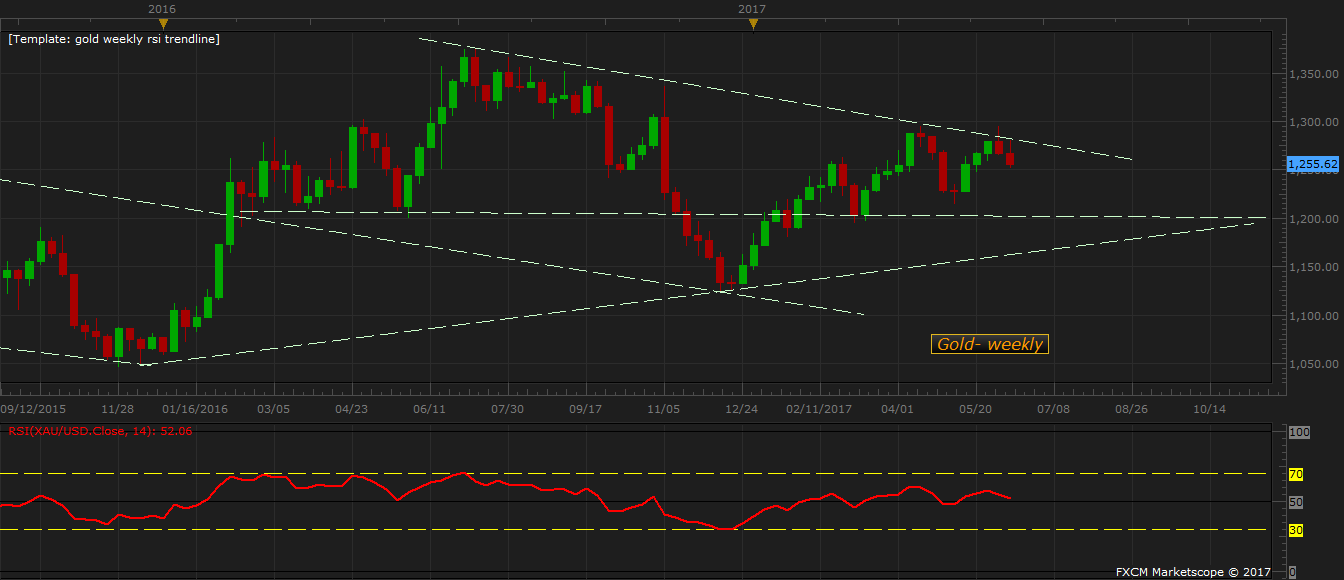 However, as we can see from the chart that breakout attempt failed for the gold and the yellow metal is now heading for its second consecutive weekly decline. The yellow metal is currently trading at $1256 per troy ounce and we suspect that it would decline further before making any further attempt to break free of the range. We calculate that gold is likely to decline to $1225 per troy ounce. A further decline towards the lower trend line of the range can’t also be ruled out.