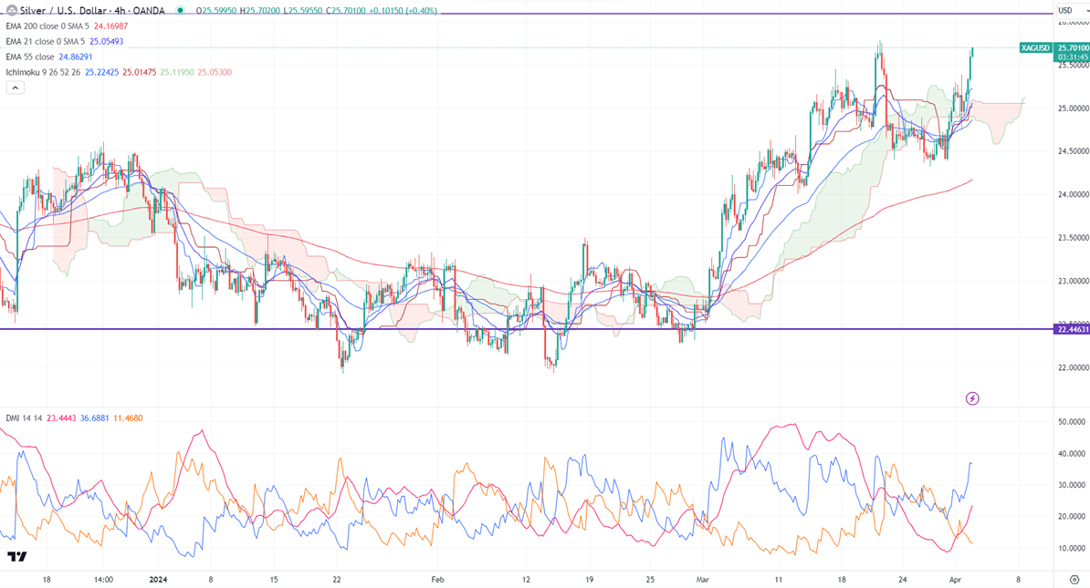 Gold/Silver ratio- 88.21. It shows that one ounce of gold is equivalent to 89.78 ounces of silver. The probability of a 25 bpbs rate cut in June increased to 62.1% from 56.80%. This is a positive sign for precious metals. It is good to buy silver at lower levels compared to gold.