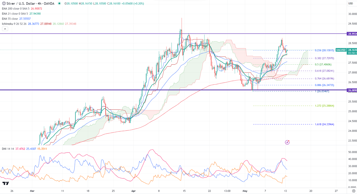 Silver pared some of its gains after one week of uptrend. It hit a low of $27.96 at the time of writing and is currently trading around $28.10.