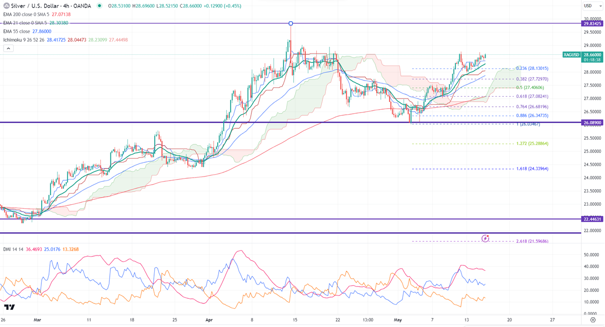 It trades above 21, 55- EMA, and 200 EMA in the 4-hour chart. The near-term support is around $28.40 and a break below the target of $27.90/$27.60/$27/$26.40/$26/$25. On the higher side, immediate resistance is around $29, and any breach above targets is $30. Major bullish continuations only above $30.