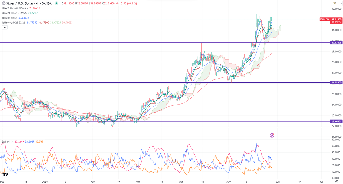 Silver held above $32 despite the strong US dollar. It hit a high of $32.30 at the time of writing and is currently trading around $32.03.