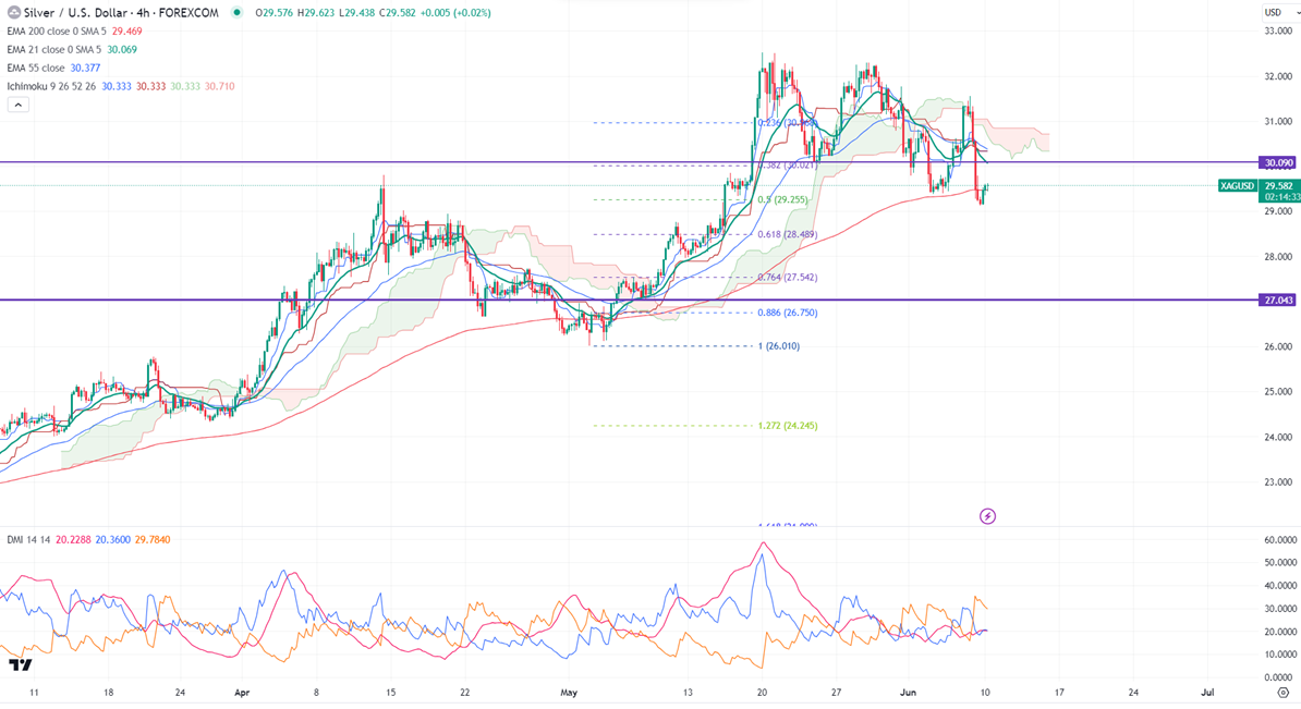 It trades above 21 and above 55- EMA, and 200 EMA in the 4-hour chart. The near-term support is around $29.30 and a break below the target of $28.63/$27.90. On the higher side, immediate resistance is around $30 and any breach above targets is $30.70/$31.50/$32/$32.50.