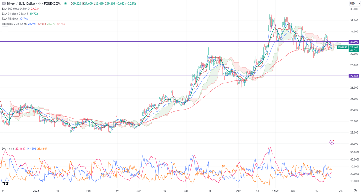It trades below 21 and 55- EMA, and 200 EMA in the 4-hour chart. The near-term support is around $30 and a break below the target of $29.25/$29. On the higher side, immediate resistance is around $31 and any breach above targets is $31.50/$32/$32.50.