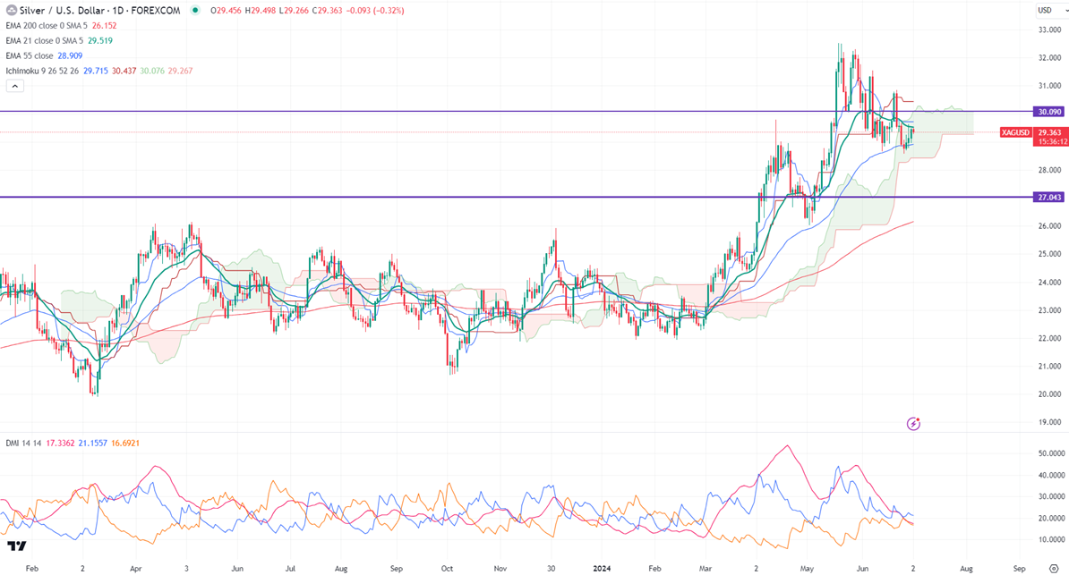 It trades below 21, 55- EMA, and 200 EMA in the 4-hour chart. The near-term support is around $28.50 and a break below the target of $27.94/$26. On the higher side, immediate resistance is around $29.50 and any breach above targets is $30/$31/$31.50/$32/$32.50.