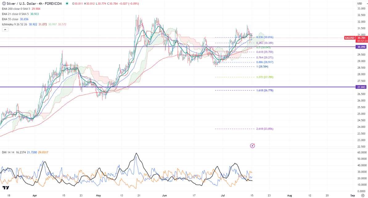 China’s second-quarter GDP rose 4.7% YoY, below market expectations of a 5.1% growth. Chinese industrial production came above the market forecast of 5.3%. June retail sales missed estimates, rising 2% vs the forecast of 3.3%.(negative for industrial metal Silver).