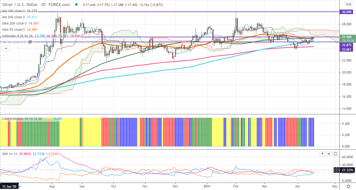 As per our analysis, Silver continues to trade higher for fourth consecutive days. The jump was mainly due to the weak US dollar and minor sell-off in US bond yields. US retail sales data surged to 9.8% in Mar compared to a forecast of 5.8%. The number of people who have filed for unemployment benefits declined to 576k in the previous week compared to an estimate of 703K.