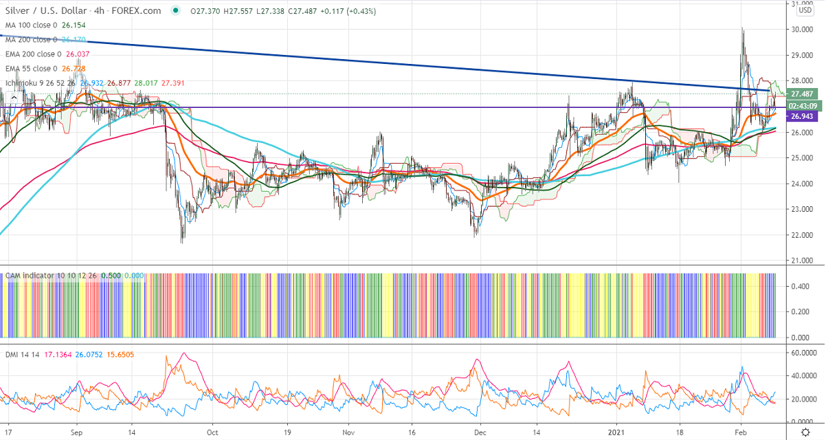 Technically, silver's significant support is at $26 and violation below will drag the pair down to $25.48/$25/$24.05. The near term resistance is at $27.60, any surge past targets $28/$28.62/$29 is possible.