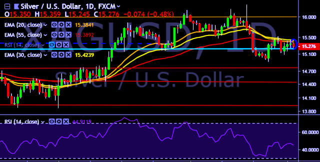 We prefer to take short position on XAG/USD around $15.32, stop loss at $15.43 and target of $15.07/$14.90.