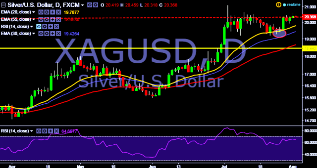We prefer to take short position in XAG/USD around $20.38 with stop loss at $20.55 and target of $20.05/$19.87.