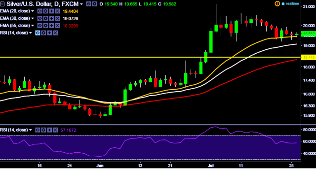 - XAG/USD is currently trading around $19.57 marks.