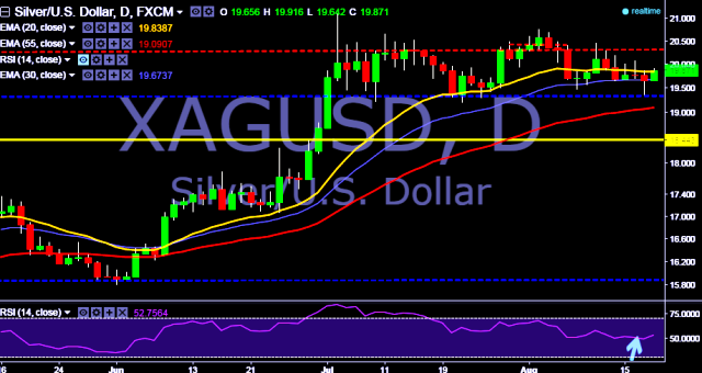 We prefer to go long on XAG/USD above $19.88 with stop loss at $19.62 and target of $20.08/$20.22/$20.46.