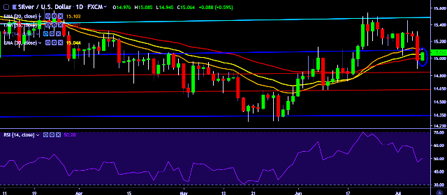 - XAG/USD is currently trading around $15.06 marks.