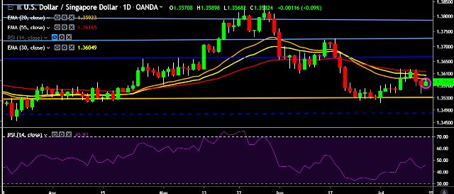We prefer to take long position on USD/SGD only above 1.3590, stop loss at 1.3550 and target of 1.3680.
