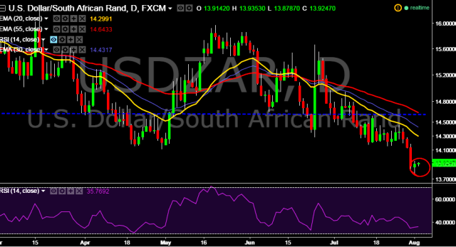 We prefer to take long position in USD/ZAR only above 13.95, stop loss 13.77 and target 14.22/14.48.