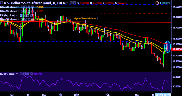 We prefer to take short position in USD/ZAR around 12.95, stop loss at 13.15 and target of 12.70.