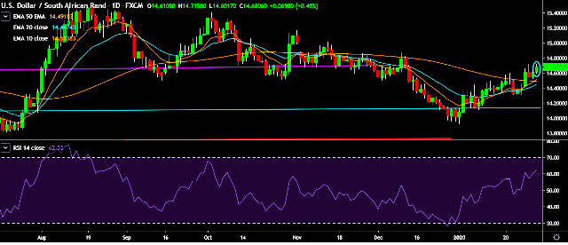 - A daily close above 14.61 will take the parity higher towards key resistances around 14.70, 14.94, 15.02, 15.22, 15.40, 15.70, 15.92 and 16.10 marks respectively.