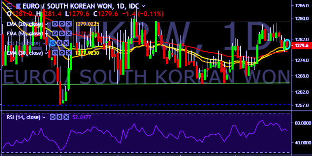 - EUR/KRW is currently trading around 1,279 mark.