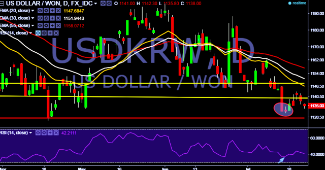 We prefer to take short position in USD/KRW only below 1128, stop loss 1142 and target 1115/ 1101 marks.