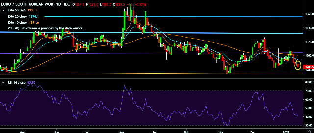 - EUR/KRW is currently trading around 1,284 mark.