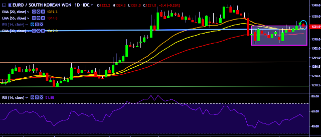 We prefer to take long position on EUR/KRW only above 1,324, stop loss 1,315 and target of 1,340/1,358.