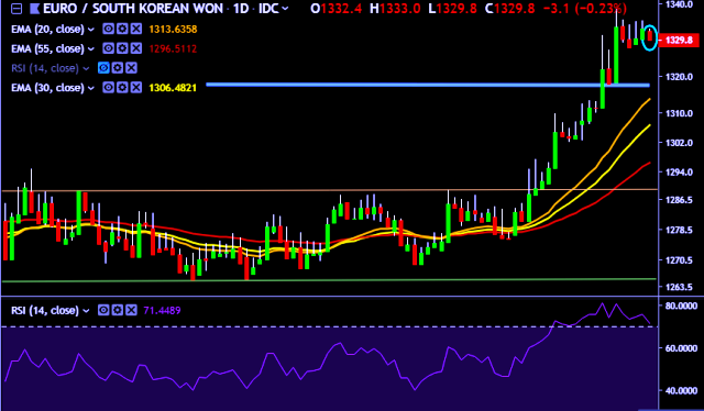 - EUR/KRW is currently trading around 1,330 mark.