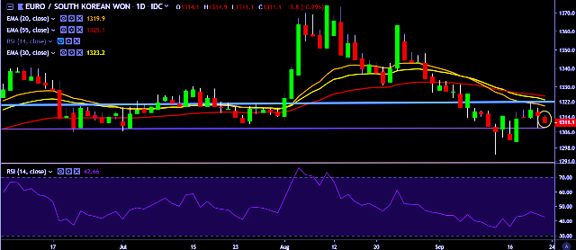 - EUR/KRW is currently trading around 1,312 mark.