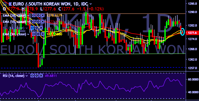 - EUR/KRW is currently trading around 1,277 mark.