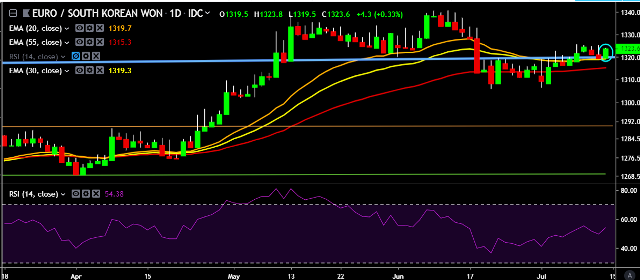 We prefer to take long position on EUR/KRW around 1,323, stop loss 1,317 and target of 1,340/1,358.