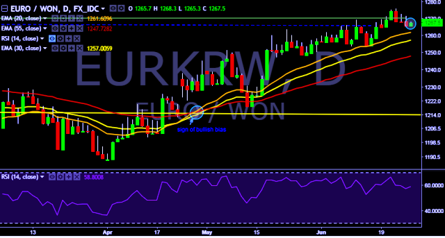 We prefer to take short position in EUR/KRW only below 1,265, stop loss at 1,277 and target of 1,248.