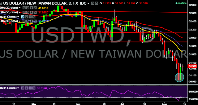 We prefer to take long position in USD/TWD only above 31.40, stop loss 30.99 and target 31.62/31.93.