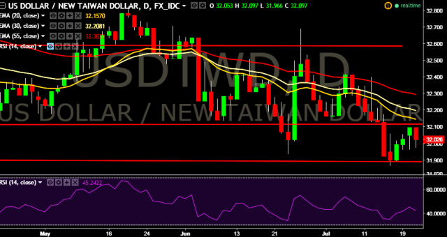 We prefer to take short position in USD/TWD around 32.02, stop loss 32.13 and target 31.87/31.72/31.58 marks.
