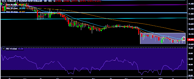 We prefer to take long position on USD/TWD only above 30.06, stop loss at 29.80 and target of 30.15/30.40.