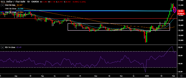 We prefer to go long on USD/THB around 30.90, stop loss at 30.70 and target of 31.25/31.37
