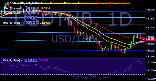 - USD/THB is currently trading around 31.68 marks.