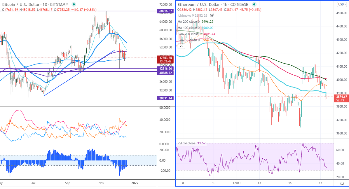 Levels to watch- $46980 (200- day MA). Any daily close below will drag the Bitcoin to the next level of $41967 (Dec 4th low)/$40000. Major demand zones are $39759, $37600. A breach below $37000 will pull the BTC to 2021 low $28600.