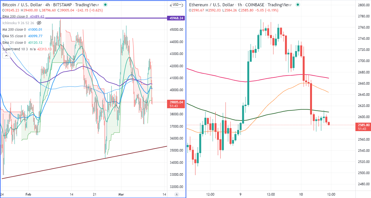 It is good to buy on dips around $39000 with SL around $36000 for TP of $50000.