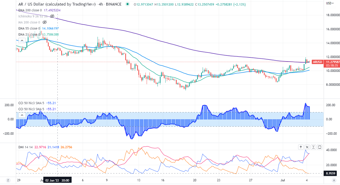 Top Altcoins Strength Index (4- hour chart calculated using EMA and Average directional index )