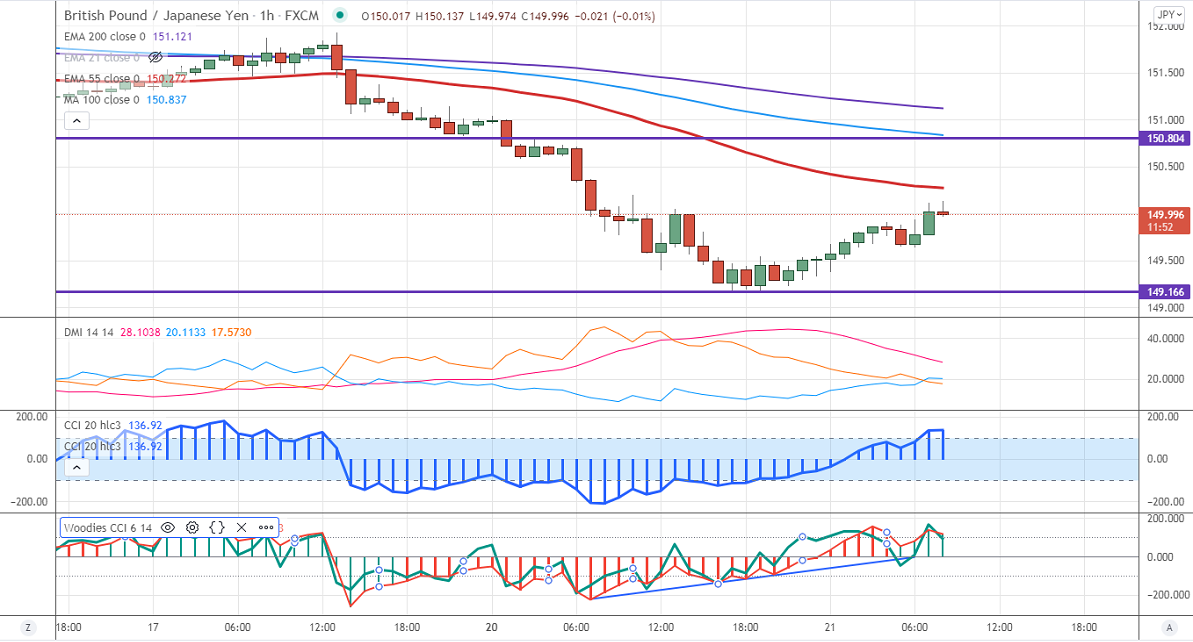GBPJPY has formed a double bottom around 149.17 and shown a nice pullback. It hits an intraday high of 150.11 and is currently trading around 150.05. The intraday trend of GBPJPY is bullish as long as resistance 149.15 holds.