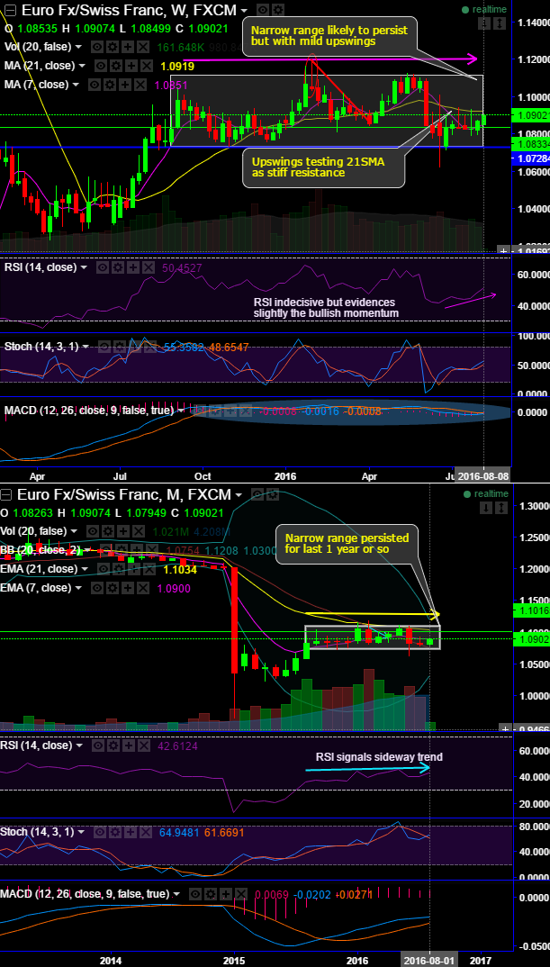 We traced out a sharp gravestone doji pattern at 1.0830 levels testing resistance at this juncture (21SMA) that evidences the weakness again in this pair, as a result, we now see the slumps to continue in the narrow range trend.